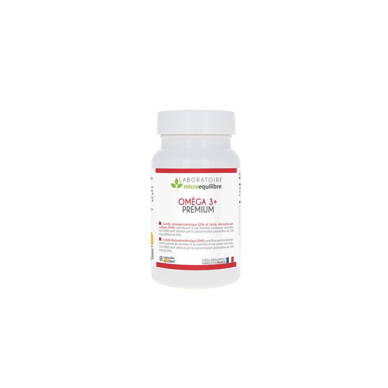 OMEGA 3 + PREMIUM is composed of two fatty acids from the Omega 3 family (Epax®) which are docosahexaenoic acid (DHA) and eicosapentaenoic acid (EPA). Their effects on health are well documented today. Particularly well dosed in DHA and EPA, our dietary supplement provides you with the right amount for optimal action on heart function, brain function and eyesight.