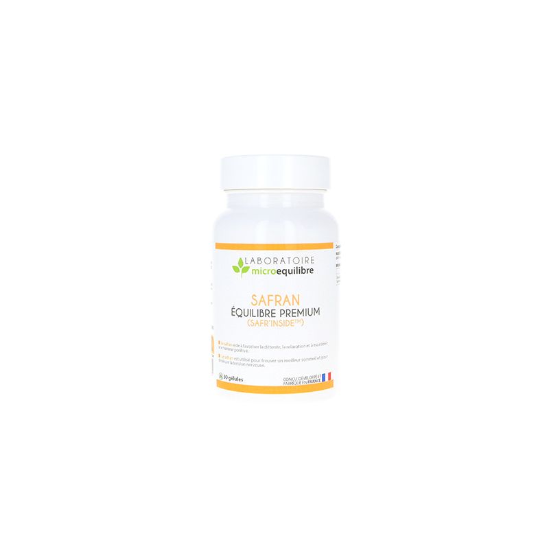 COMPLEXE SAFRANIA 5-HTP PREMIUM combines Saffron extract with 5-HTP, 2 compounds traditionally indicated in cases of stress, ill-being and emotional imbalance. Griffonia simplicifolia is a common plant in Africa. Its seeds are naturally rich in L-5 HTP (or hydroxytryptophan), a precursor of serotonin, the happiness hormone. Saffron, for its part, helps promote relaxation for a well-being effect. Vitamins B2, B3, B5, B6, B12, zinc and magnesium bisglycinate help reduce the fatigue that often accompanies states of stress.